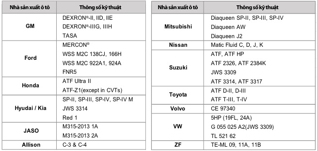 sử dụng nhãn hiệu DEXRon, ATF DX-III có thể được sử dụng trong hộp số tự động hoặc các thiết bị khác; chẳng hạn như hệ thống lái trợ lực, hệ thống thủy lực công nghiệp và máy nén khí cho sản phẩm dịch vụ được chỉ định là chất lỏng DEXRon II E, DEXRon II hoặc DEXRon
