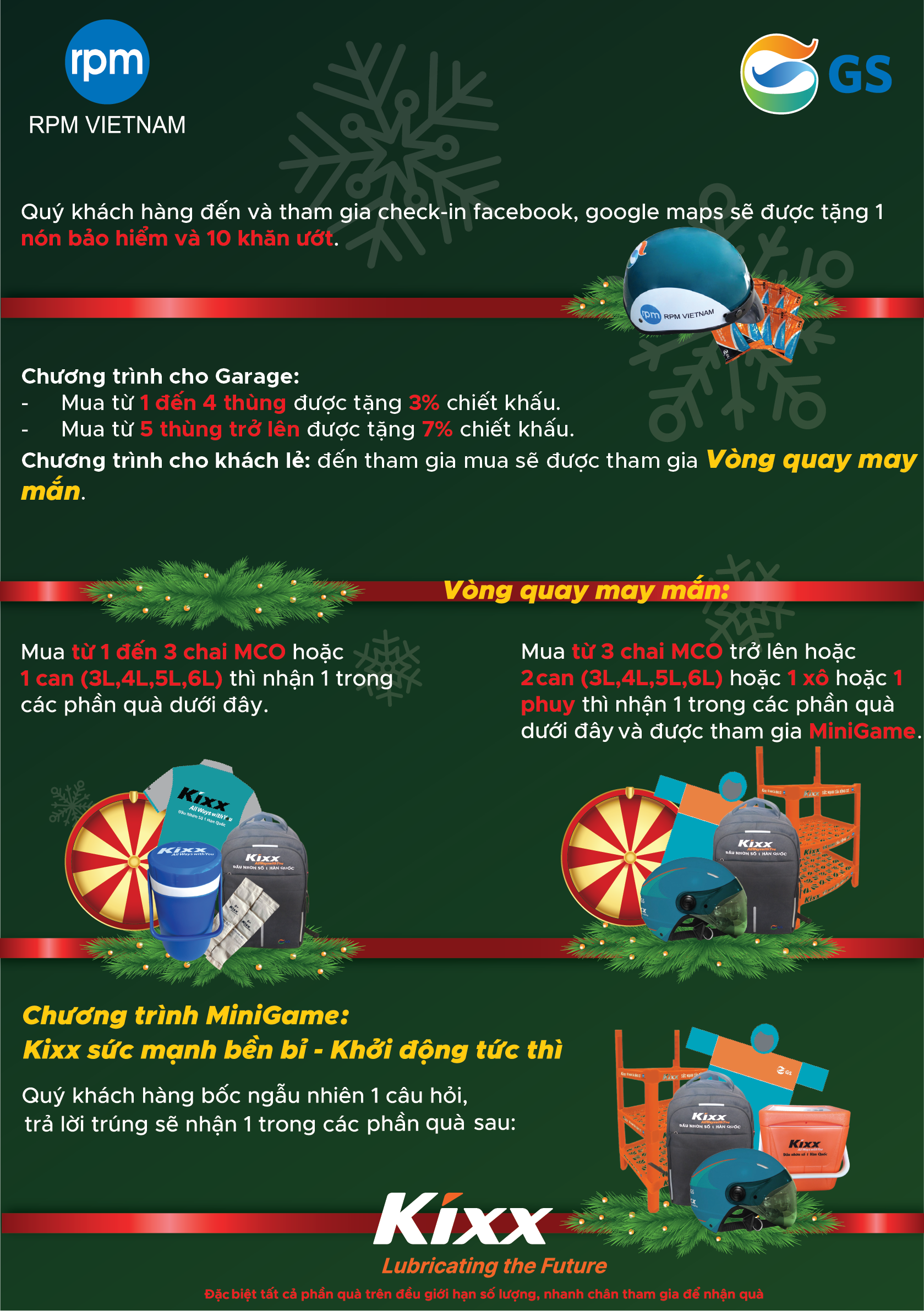 Khách hàng mua từ 1 đến 3 chai hoặc 1 can ( 3L,4L,5L,6L) sẽ được tham gia Vòng Quay May Mắn nhận phần quà tương ứng. Mua từ 4 chai trở lên hoặc 2 can ( 3L,4L,5L,6L) hoặc 1 xô hoặc 1 phuy sẽ được tham gia Vòng Quay May Mắn nhận phần quà tương ứng.